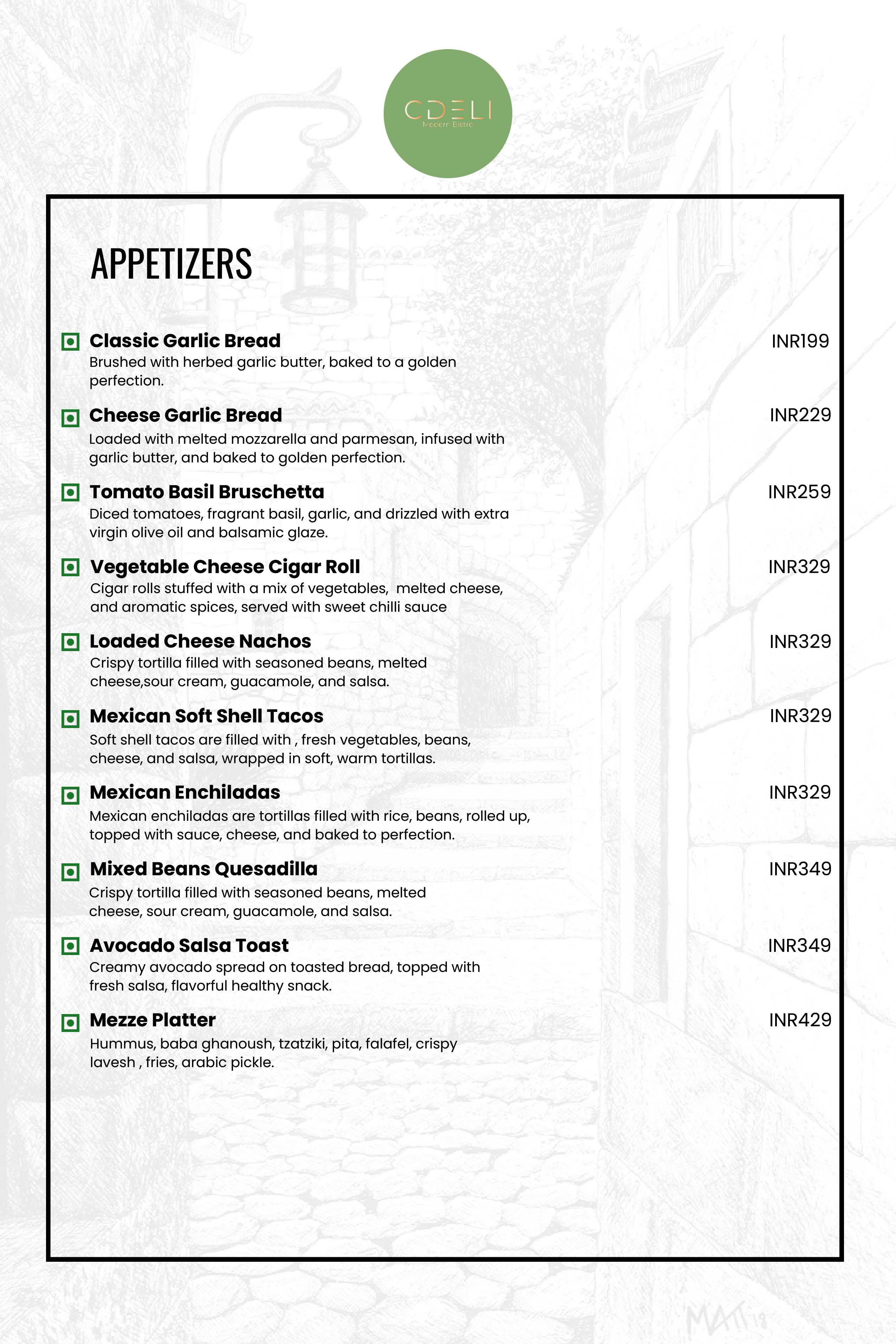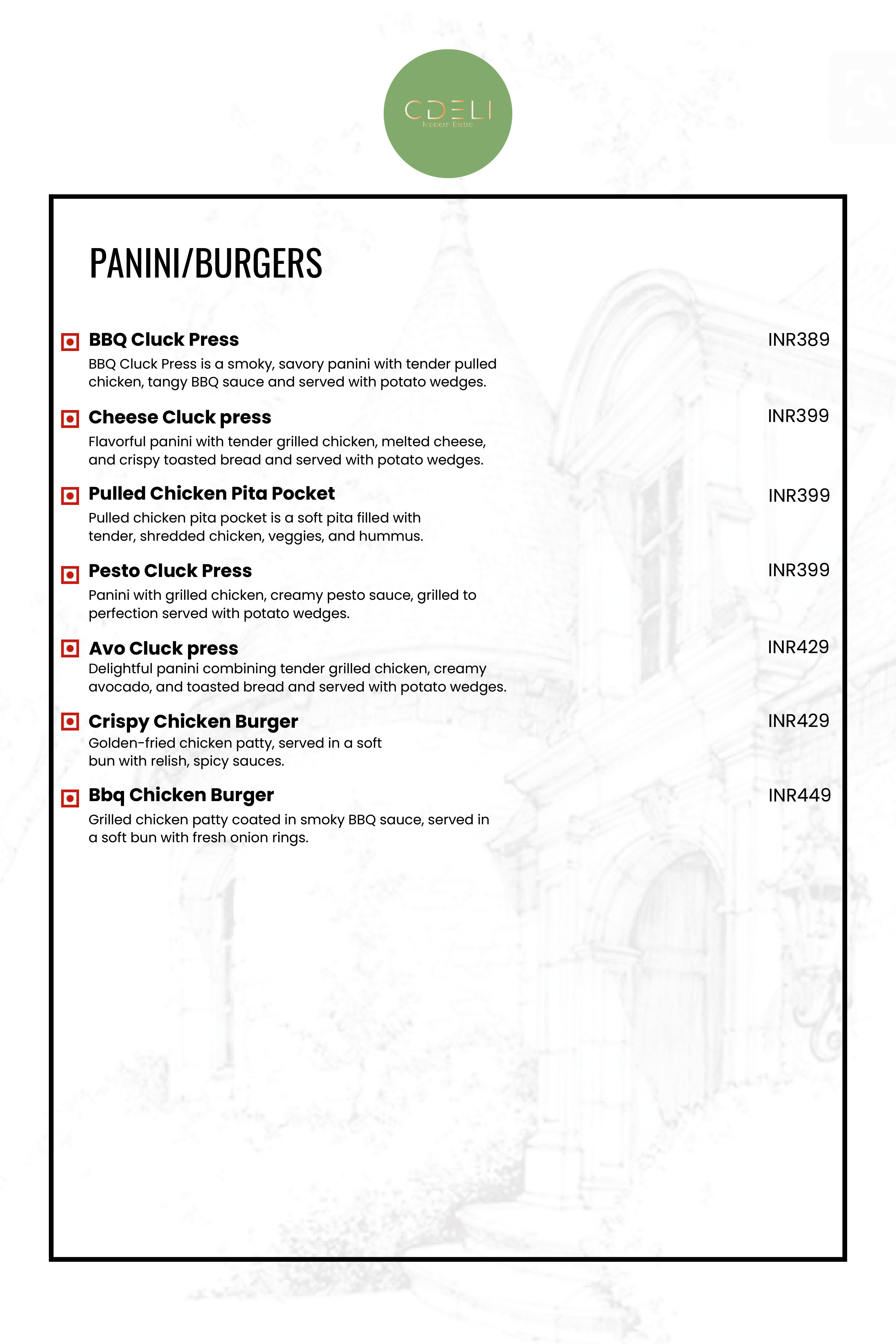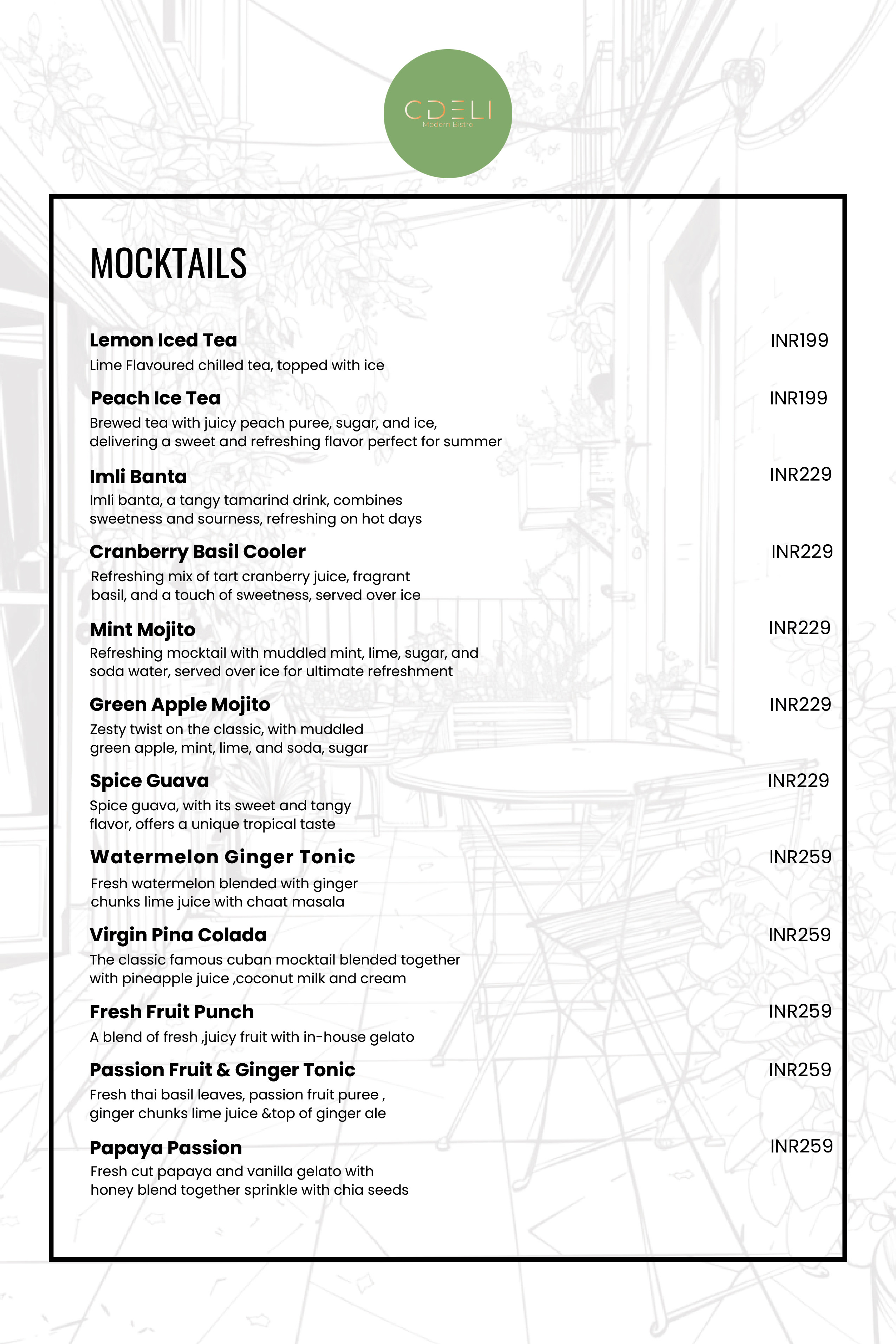 CDELI MODERN BISTRO Menu