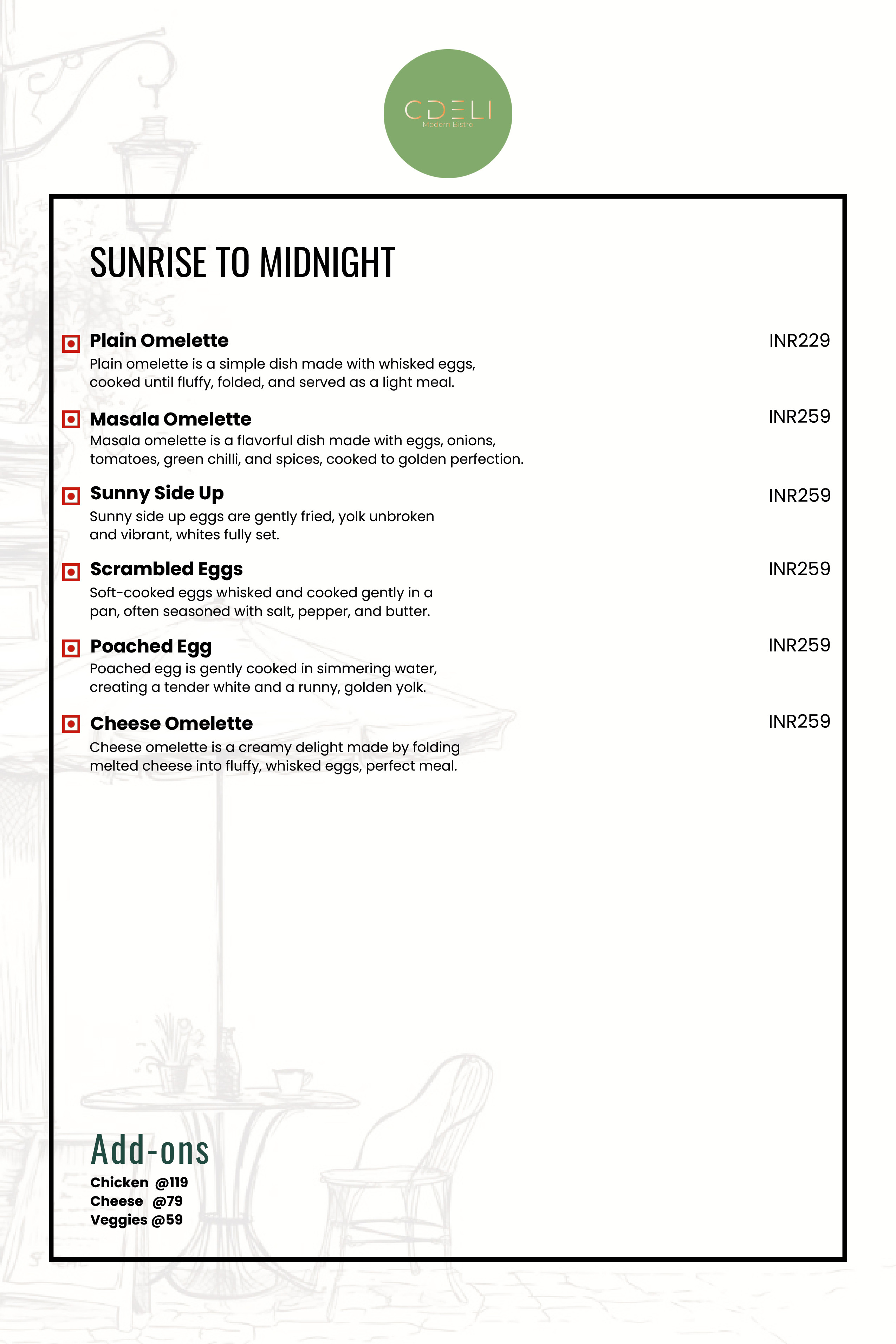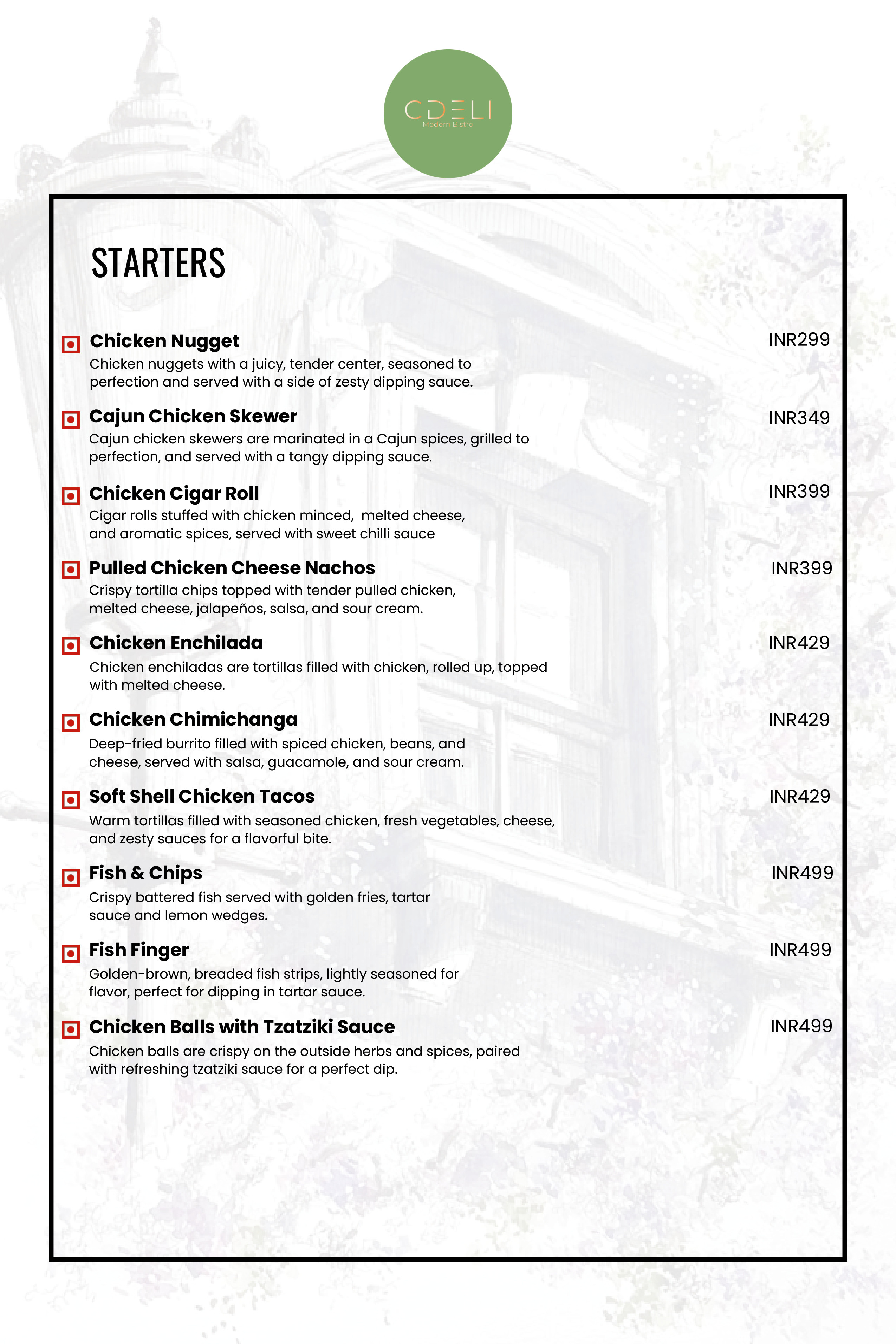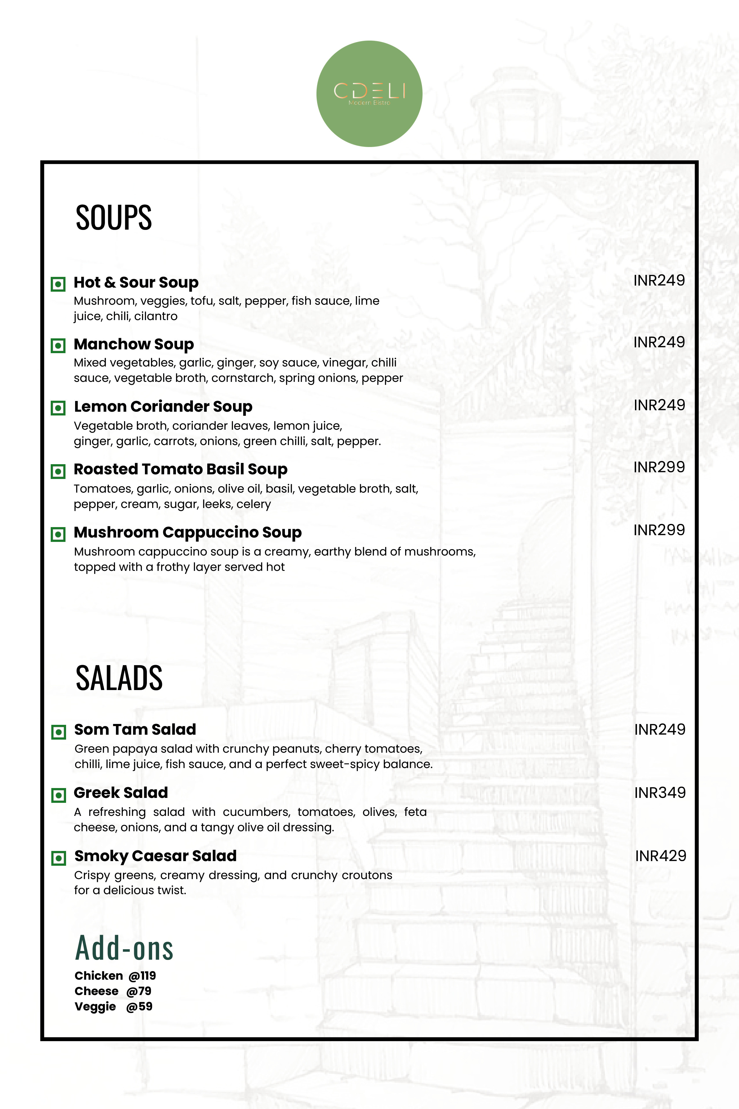 CDELI MODERN BISTRO Menu