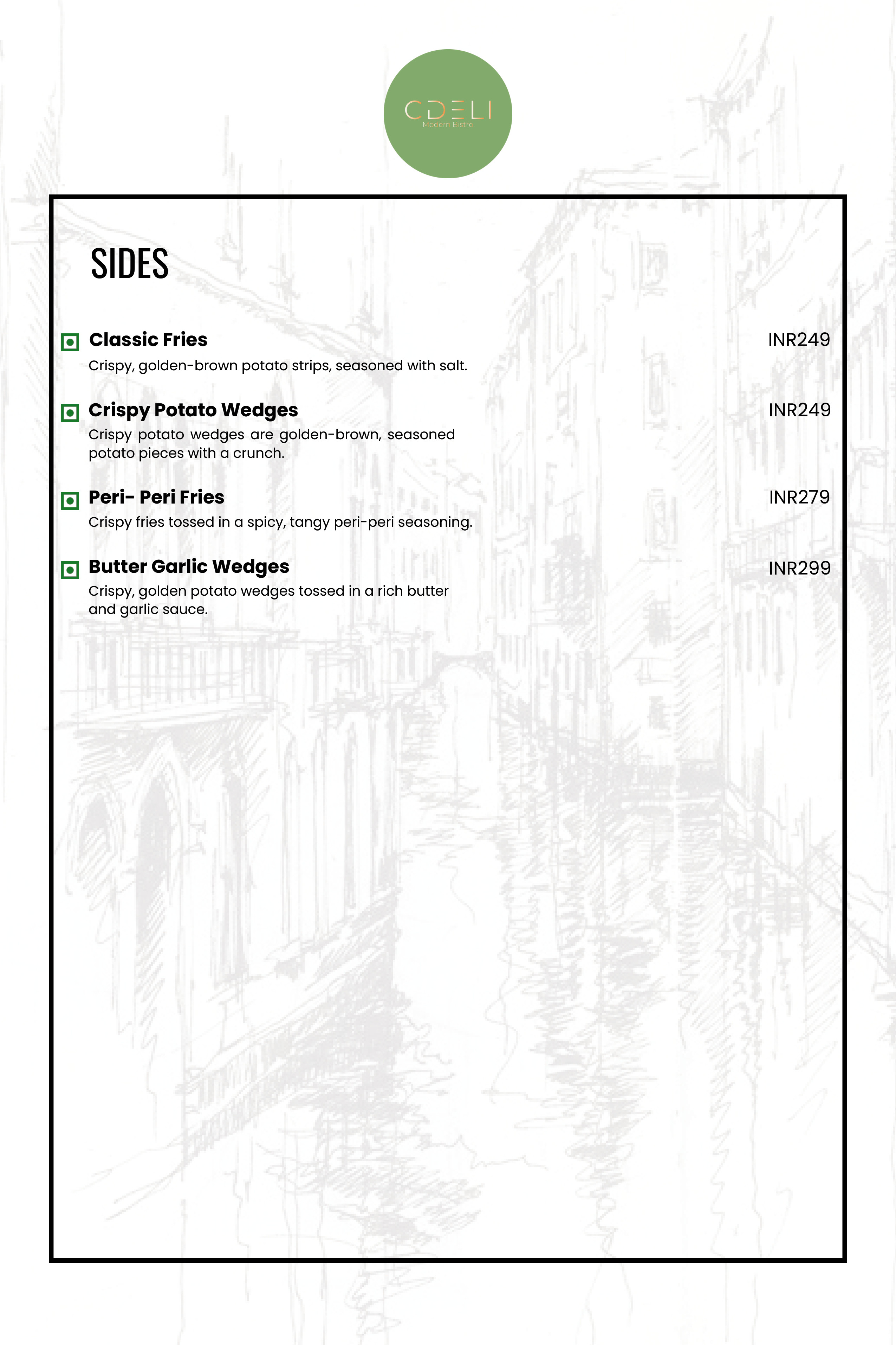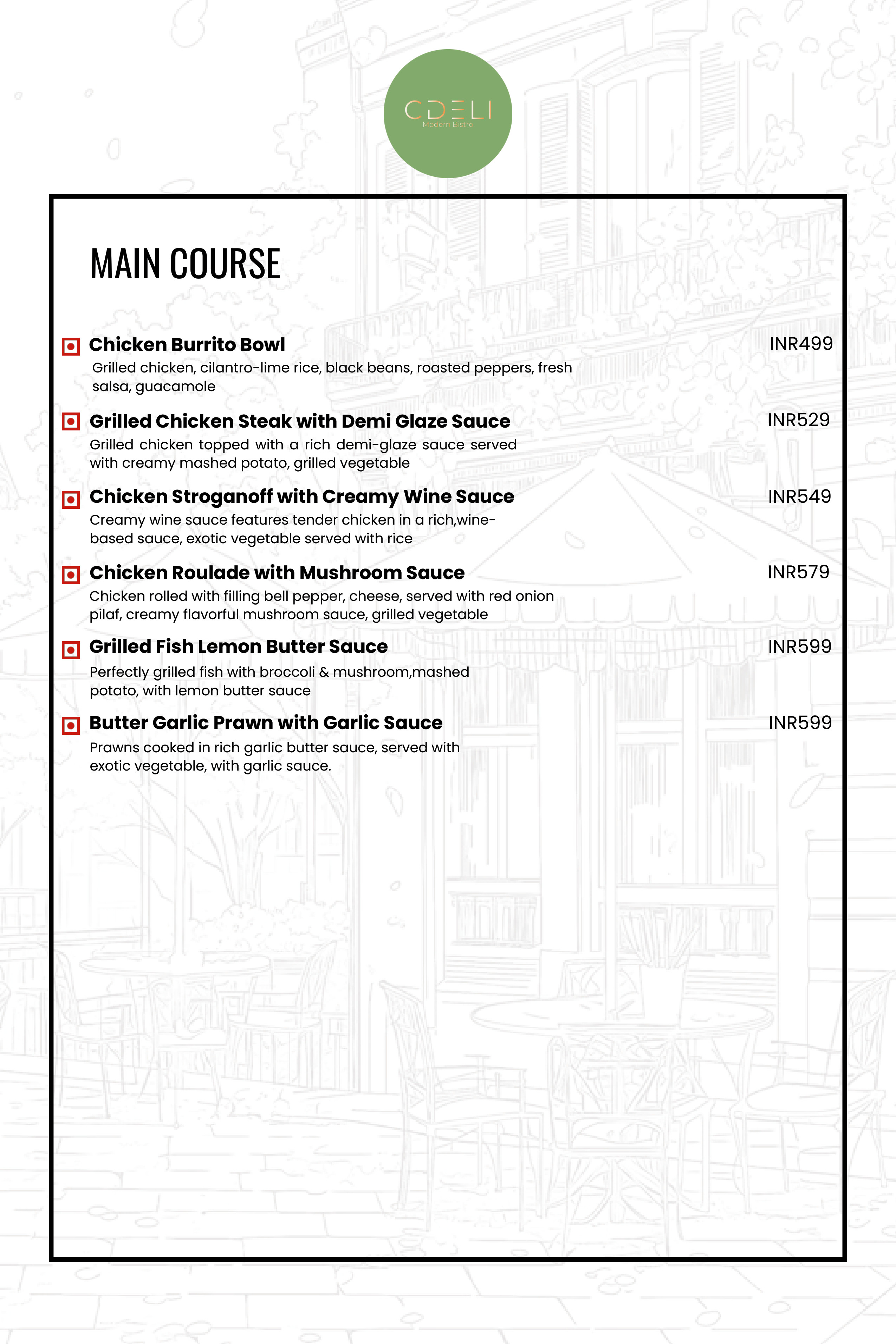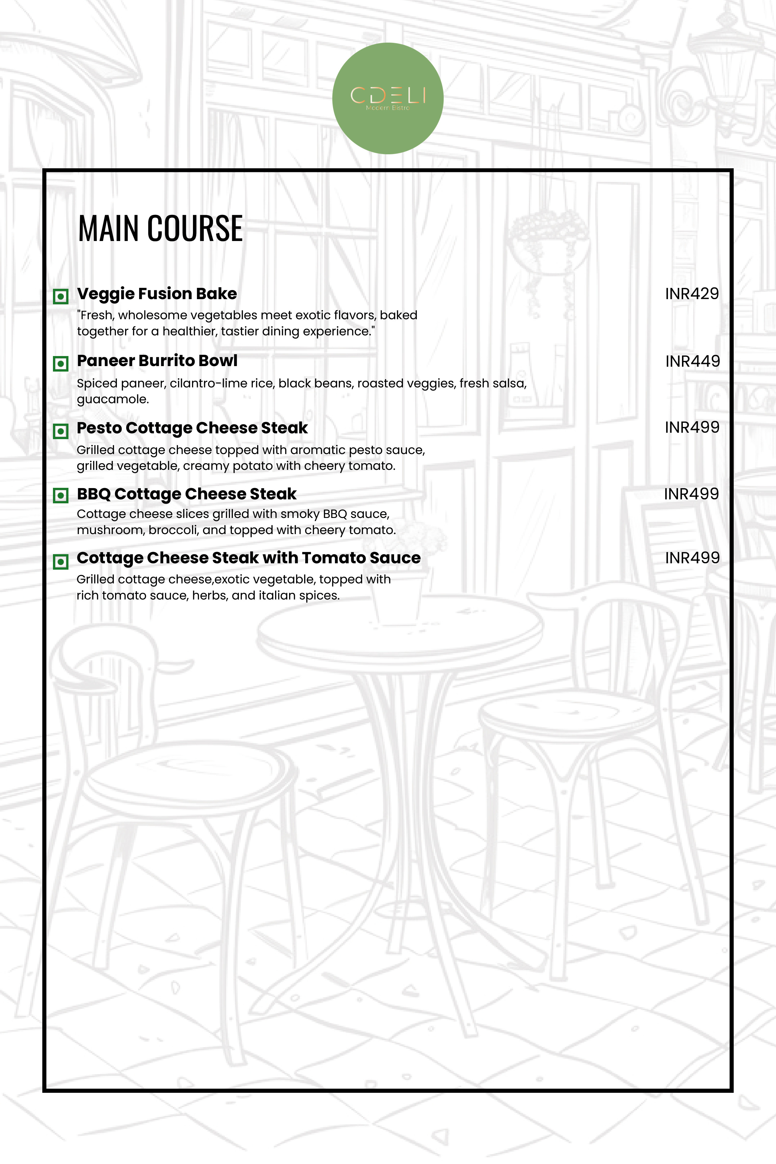 CDELI MODERN BISTRO Menu