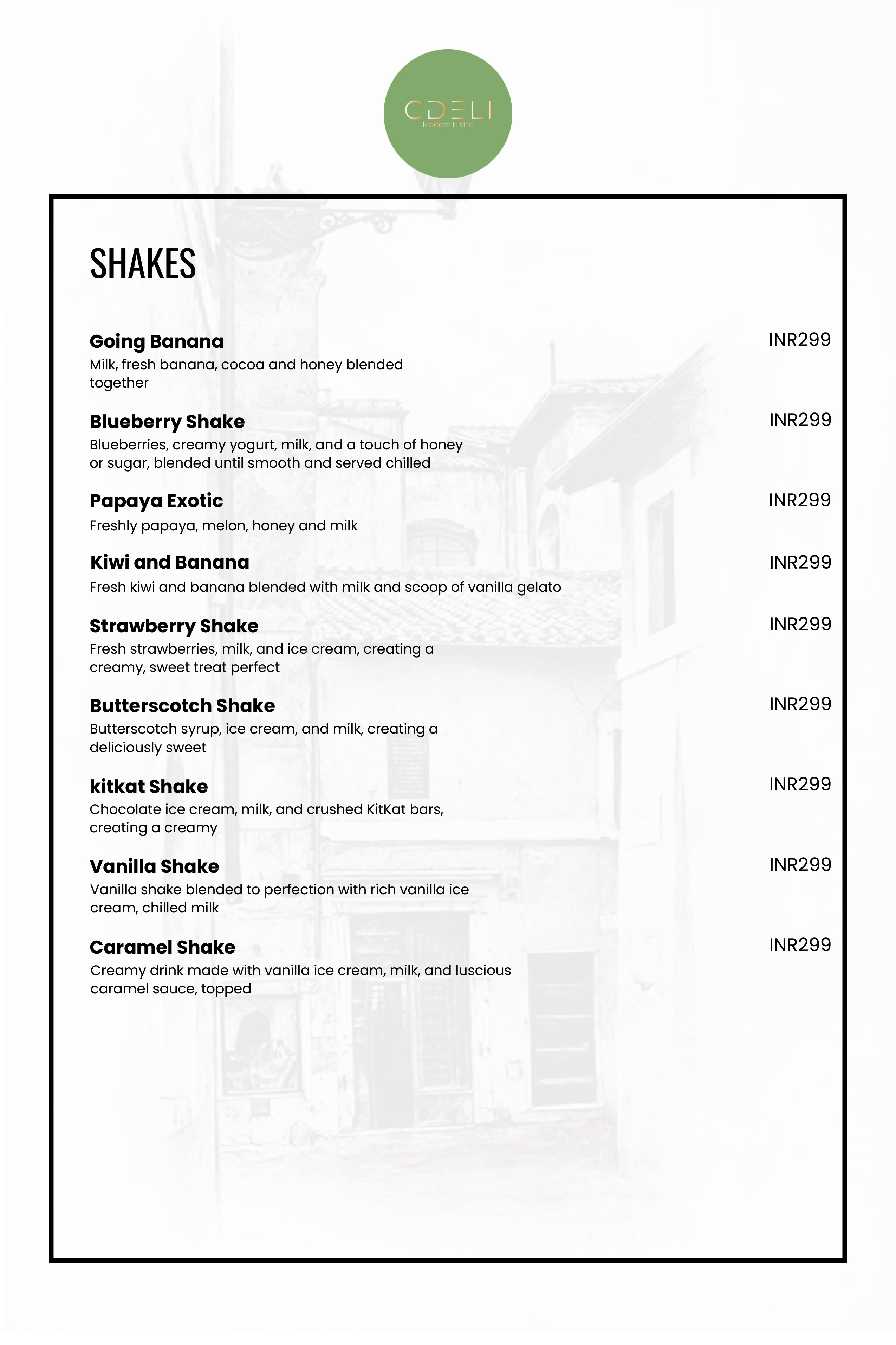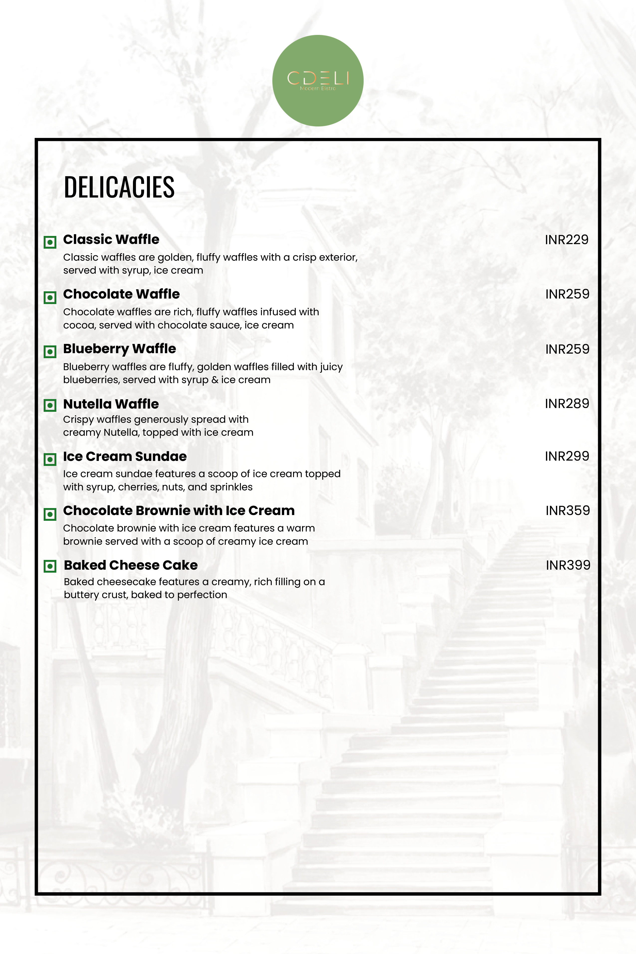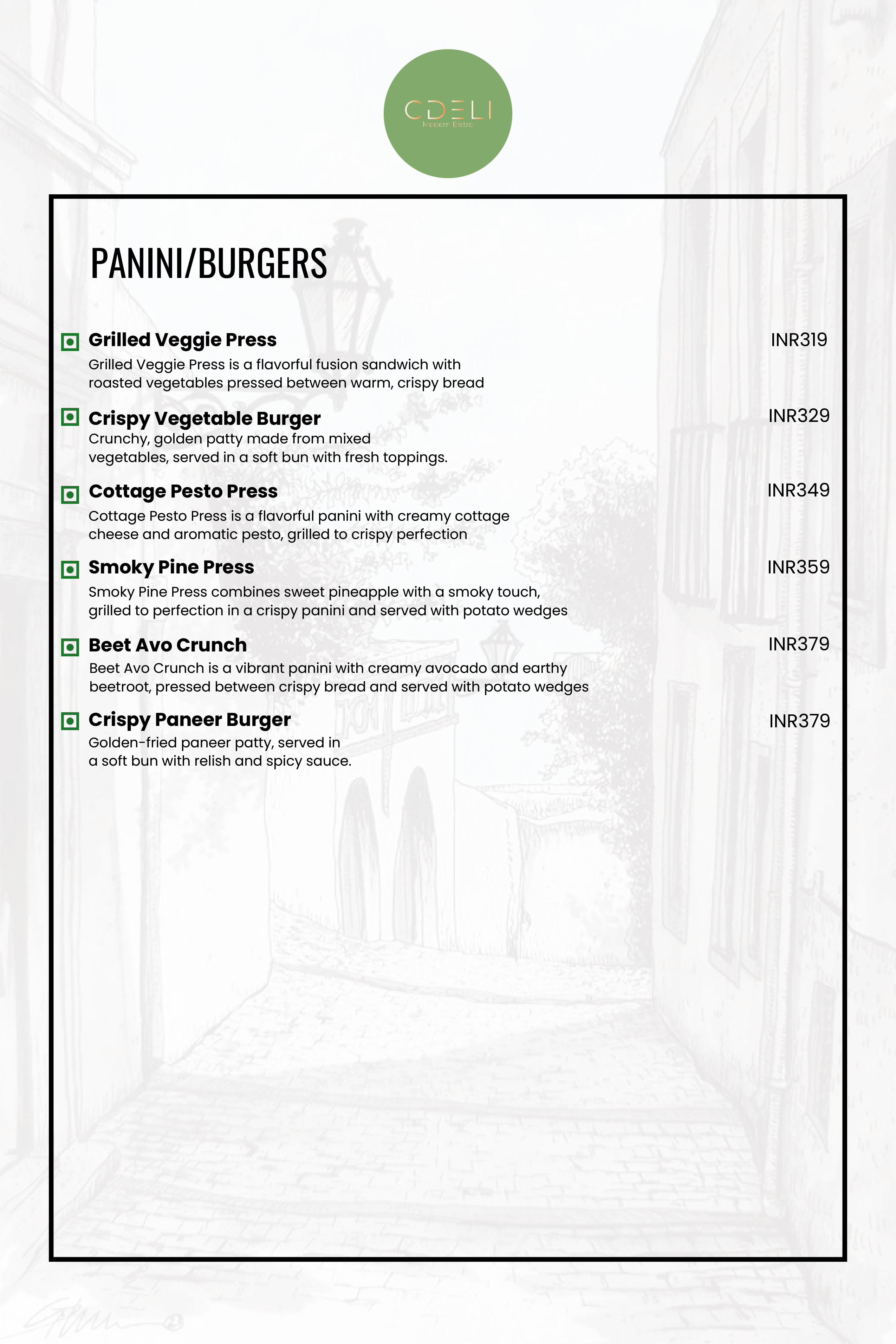CDELI MODERN BISTRO Menu
